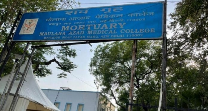 नई दिल्ली: अफरा-तफरी और बदइंतजामी से जूझ रहे देश के सबसे बड़े कोविड अस्पतालों में से एक लोक नायक जयप्रकाश नारायण (एलएनजेपी) से कुछ ही किलोमीटर दूर एक छोटा, सामान्य-सा मुर्दाघर है, जो अस्पताल की तरह मौलाना आजाद मेडिकल कॉलेज से ही जुड़ा हुआ है.