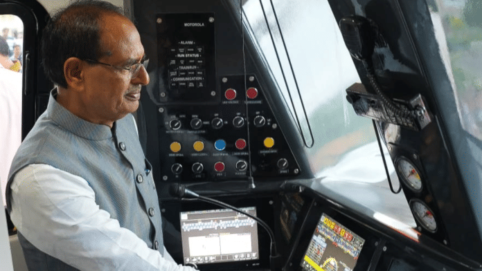 नई दिल्ली: मुख्यमंत्री शिवराज सिंह चौहान ने राजधानी भोपाल में मेट्रो ट्रायल ट्रेन का ट्रायल रन का शनिवार को अनावरण किया किया. मध्य प्रदेश मेट्रो रेल कॉरपोरेशन लिमिटेड द्वारा श्यामला हिल्स पर स्मार्ट सिटी पार्क में आयोजित इस कार्यक्रम में सीएम ने यह अनावरण किया जिसे सितंबर से शुरू किया जाएगा.