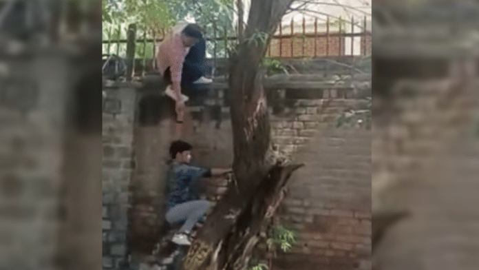 छात्राओं ने सोशल मीडिया पर 14 अक्टूबर के कई वीडियो साझा किए, जिसमें कुछ युवक चहारदीवारी फांदते हुए, परिसर में घूमते और नारे लगाते हुए दिखाई दे रहे हैं.