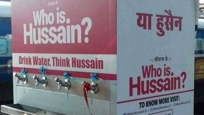 इमाम हुसैन को यज़ीद की ज़ालिम फ़ौज ने 3 दिन का भूखा-प्यासा शहीद किया था। इसीलिए कहा जाता है #DrinkWaterThinkHussain यानि आप पानी की अहमियत समझें पर अफ़सोस इस बात का कि कुछ कट्टरपंथियों को रायपुर स्टेशन पर एक NGO के लगाए प्याऊ पर हुसैन का नाम लिखा चुभने लगा और इसे ज़बरन हटा दिया। pic.twitter.com/8tO5RcSGTY