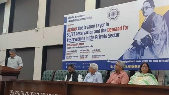 दलित संगठन एससी/एसटी आरक्षण में क्रीमी लेयर के विचार को खारिज करते हुए पूरे भारत में बैठकें कर रहे हैं. वास्तव में, कई लोग अब मौजूदा आरक्षण व्यवस्था के क्रियान्वयन में खामियों की ओर इशारा कर रहे हैं. हाल ही में, अखिल भारतीय स्वतंत्र अनुसूचित जाति संघ (एआईआईएससीए) ने दिल्ली के कॉन्स्टिट्यूशन क्लब में एक चर्चा आयोजित की और दो घंटे तक चली चर्चा में निजी क्षेत्र में आरक्षण की मांग की.