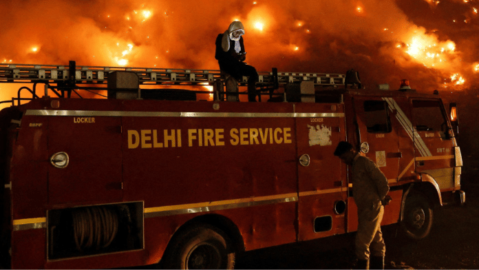 अधिकारियों ने कहा कि दिल्ली पुलिस भी अलर्ट पर थी और अग्निशमन कर्मियों की मदद कर रही थी.