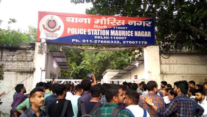 फिलहाल लॉ फैक्ल्टी के कम से कम 150 छात्र मौरिस नगर थाने पर धरने पर बैठे और आरोपी पुलिसवालों के खिलाफ कार्रवाई करने की मांग कर रहे हैं. एक छात्र शुभम यादव ने दिप्रिंट को बताया, ‘मामला प्रमोद के साथ पुलिस थाने में हुई बर्बरता का है. उसे दलित कहकर गालियां दी गई. हमें उसके भतीजे के केस से लेना देना नहीं है. हम प्रमोद का न्याय दिलाने के लिए आए हैं.’