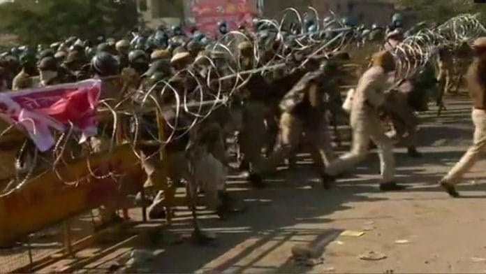 प्रदर्शनकारियों को शहर में प्रवेश करने से रोकने के लिए सिंधु बॉर्डर पर बाड़ लगाने के लिए कांटेदार तार का भी उपयोग किया जा रहा है.