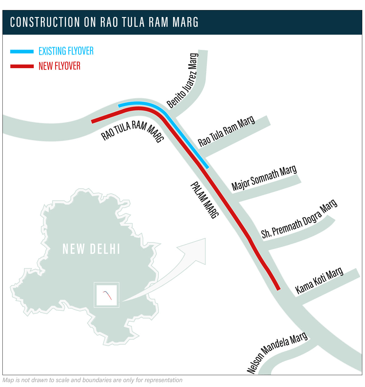 नया थ्री-लेन फ्लाईओवर, वसंत विहार के पास बाहरी रिंग रोड के साथ राव तुला राम मार्ग के टी-जंक्शन पर 900 मीटर लंबे सिंगल-कैरिजवे फ्लाईओवर के समानांतर आ रहा है. मौजूदा फ्लाईओवर 2009 में खोला गया था, लेकिन लगभग 2 लाख वाहनों के अनुमानित दैनिक प्रवाह को संभालने में अक्षम है.