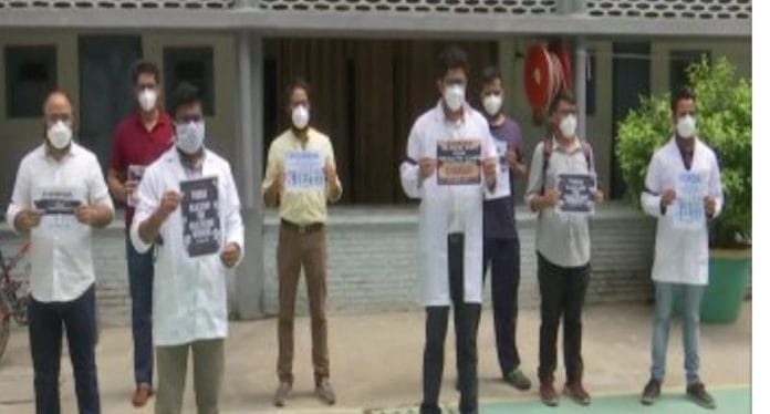 कुछ चिकित्सकों ने विरोध संदेश लिखे प्लेकार्ड ले रखे थे जबकि अन्य ने ऐसे पीपीई किट पहने थे जिसके पीछे ‘काला दिवस प्रदर्शन’ लिखा था.