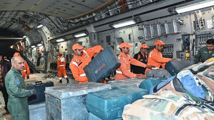 इसमें राष्ट्रीय आपदा मोचन बल (एनडीआरएफ) के विशेष खोज एचं बचाव दल शामिल हैं, जिसमें पुरुष एवं महिला कर्मी, श्वान दस्ता, चिकित्सकीय आपूर्ति, उन्नत ‘ड्रिलिंग’ उपकरण और सहायता प्रयासों के लिए आवश्यक अन्य महत्वपूर्ण उपकरण शामिल हैं.