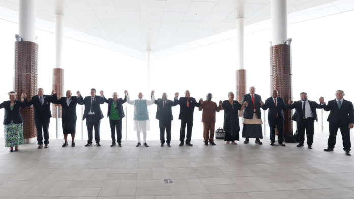 पीएम मोदी ने मंच पर बोलते हुए यह भी कहा कि उनके लिए, प्रशांत महासागर में स्थित द्वीप राष्ट्र “बड़े महासागरीय देश हैं न कि छोटे द्वीप राज्य”. प्रधानमंत्री मोदी पापुआ न्यू गिनी के प्रधान मंत्री जेम्स मारपे के साथ तीसरे भारत-प्रशांत द्वीप समूह सहयोग (FIPIC) शिखर सम्मेलन की सह-अध्यक्षता कर रहे हैं.