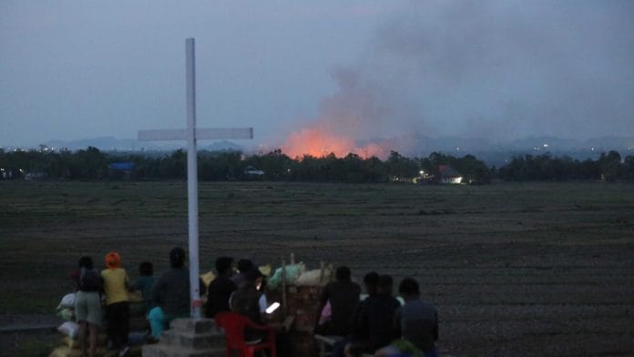 लीड फोटो: इस साल मणिपुर में कुकी-मैतेई जातीय संघर्ष के दौरान कुकी ग्रामीणों का एक समूह अपने घरों को आग की लपटों में जलते हुए देख रहा है. इस फोटो में हृदयविदारक और वीरानी मेरे लिए संघर्ष के दौरान जनजातीय कुकी-ज़ो समुदाय और गैर-आदिवासी मैतेई दोनों के सदस्यों की मृत्यु, चोट, हमले और विस्थापन का प्रतीक है | फोटो: सूरज सिंह बिष्ट/दिप्रिंट