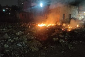 उसी चार लॉज में से एक राम दुलारी लॉज, में रहने वाले प्रशांत पाण्डेय बताते हैं, ‘3000 प्रति कमरा किराया देने के बावजूद ग्राउंड फ्लोर और फर्स्ट फ्लोर पर रहने वाले छात्र 24 घंटा रूम बंद करके ही रहते हैं, ताकि छोटे कीड़े, मच्छर घर में न आएं. वहां से बदबू इतनी बुरी आती है कि आप 10 मिनट भी नहीं ठहर सकते हैं. महीने-2 महीने पर कचरे को मकान मालिक के द्वारा जलाया जाता है. सुबह में सरकार की कचरा फेंकने वाली गाड़ी आती है, लेकिन वह मुख्य सड़क से होकर ही चली जाती है. गली में नहीं आती है. इसलिए मजबूरी में हम लोग सड़क पर ही कचरा फेंकते हैं. पूरे इलाके की स्थिति ऐसी ही हैं.’