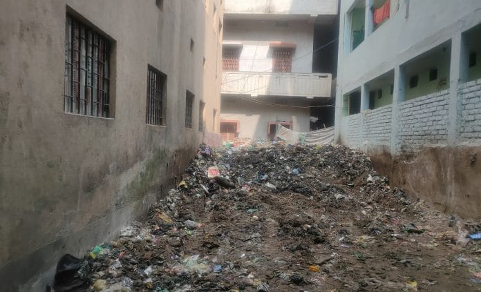 उसी चार लॉज में से एक राम दुलारी लॉज, में रहने वाले प्रशांत पाण्डेय बताते हैं, ‘3000 प्रति कमरा किराया देने के बावजूद ग्राउंड फ्लोर और फर्स्ट फ्लोर पर रहने वाले छात्र 24 घंटा रूम बंद करके ही रहते हैं, ताकि छोटे कीड़े, मच्छर घर में न आएं. वहां से बदबू इतनी बुरी आती है कि आप 10 मिनट भी नहीं ठहर सकते हैं. महीने-2 महीने पर कचरे को मकान मालिक के द्वारा जलाया जाता है. सुबह में सरकार की कचरा फेंकने वाली गाड़ी आती है, लेकिन वह मुख्य सड़क से होकर ही चली जाती है. गली में नहीं आती है. इसलिए मजबूरी में हम लोग सड़क पर ही कचरा फेंकते हैं. पूरे इलाके की स्थिति ऐसी ही हैं.’