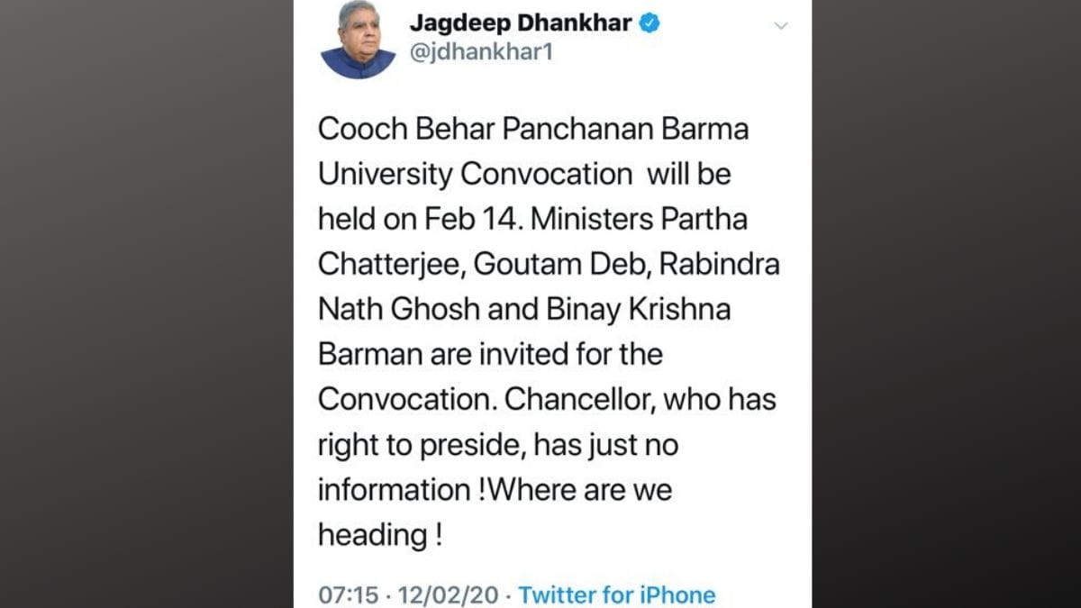 उसके दो दिनों बाद ही कूचबिहार स्थित पंचानन बरमा विश्वविद्यालय के तीसरे दीक्षांत समारोह के आयोजन में शिक्षा मंत्री पार्थ चटर्जी समेत तृणमूल कांग्रेस सरकार के चार मंत्रियों को आमंत्रित करने की खबरें आईं. लेकिन बतौर चांसलर राज्यपाल को बुलाना तो दूर उनको न्योता तक नहीं दिया गया था. इससे पहले एनआरसी और सीएए के विरोध की वजह से छात्रों के एक गुट ने धनखड़ को कलकत्ता और जादवपुर विश्वविद्यालय के दीक्षांत समारोह में भी शामिल होने से रोक दिया था और ‘गो बैक’ के नारे लगाए थे. जादवपुर विश्वविद्यालय के दीक्षांत समारोह में नोबेल पुरस्कार विजेता डा. अभिजीत बनर्जी को मानद डाक्टरेट की उपाधि से सम्मानित किया जाना था. लेकिन, छात्रों के भारी विरोध की वजह से राज्यपाल को वहां से बैरंग लौटना पड़ा था.