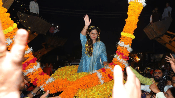 शिव शक्ति परिक्रमा के पूरे समय के दौरान, पंकजा पर क्रेन से लोग फूल बरसा रहे थे. उन्हें लंबी, भारी, बड़ी मालाएं पहना रहे थे. उनके कार्यकर्ता सेल्फी के लिए उनके चारों ओर खड़े होकर नारे लगा रहे थे. कई राजनीतिक दलों के नेता वहां मौजूद थे और उनके स्वागत के लिए आ रहे थे. श्रद्धालु बनी पंकजा रास्ते में कई मंदिरों का दौरा भी कर रही थीं.