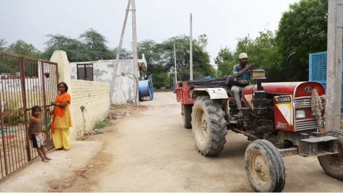 भूपेंद्र बजाद, जो दिल्ली देहात विकास मंच (लैंड-पूलिंग गांवों में स्थित जमींदारों का एक संघ) की मास्टर प्लान कमेटी के प्रमुख हैं, दिप्रिंट को एक हाउसिंग कॉलोनी की ओर इशारा किया, जो उत्तरी दिल्ली स्थित गांवों गादी खुसरो और कादीपुर में बन रही है.
