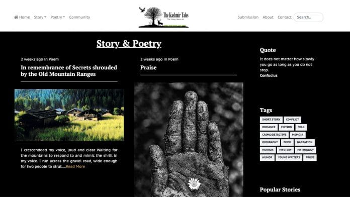 वेबसाइट की सामग्री भी बढ़ती जा रही है. कविता और गद्य से ऊपर उठकर, ‘कश्मीर टेल्स’ में अब कहानी सेक्शन में 13 श्रेणियां हैं. इनमें गद्य की अलग-अलग शैलियां हैं- संक्षिप्त कहानियां, उपन्यास, हॉरर, माइथोलॉजी और थ्रिलर्स वगैरह.