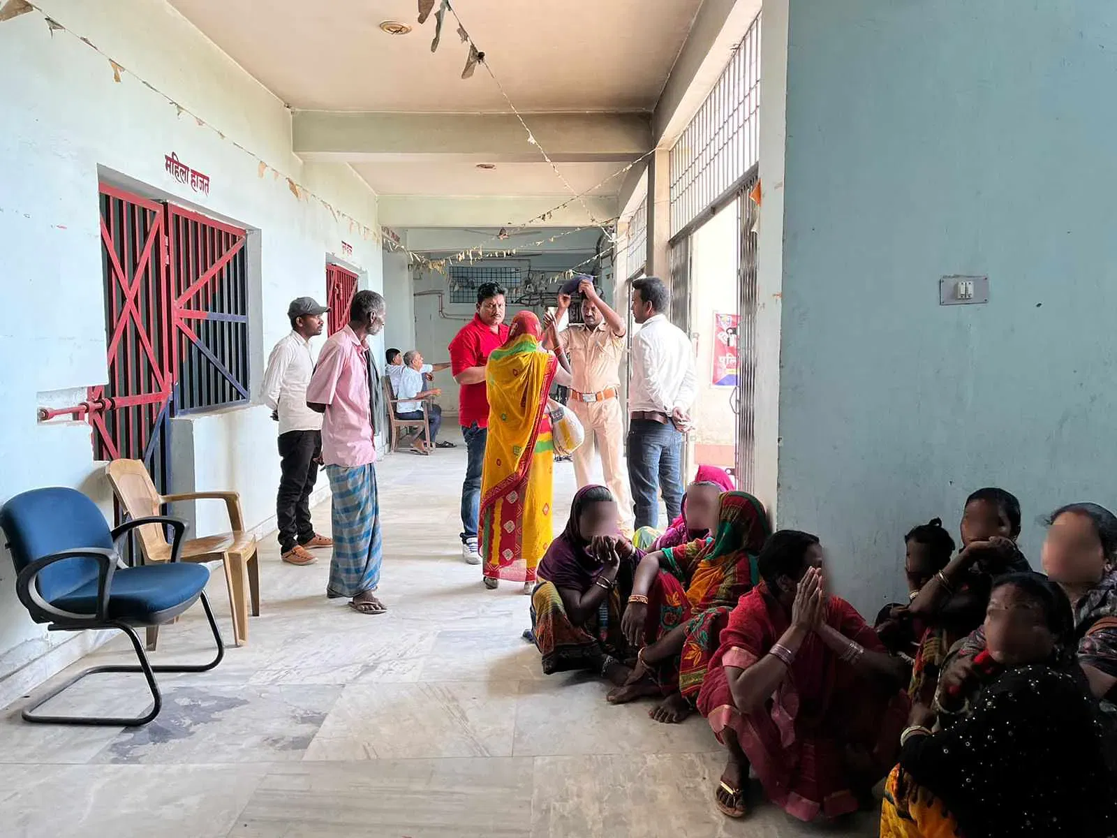 पश्चिम चंपारण के महिला थाने में अपनी बारी का इंतजार कर रहे शिकायतकर्ता फर्श पर डटे हुए हैं | फोटो: ज्योति यादव/ दिप्रिंट