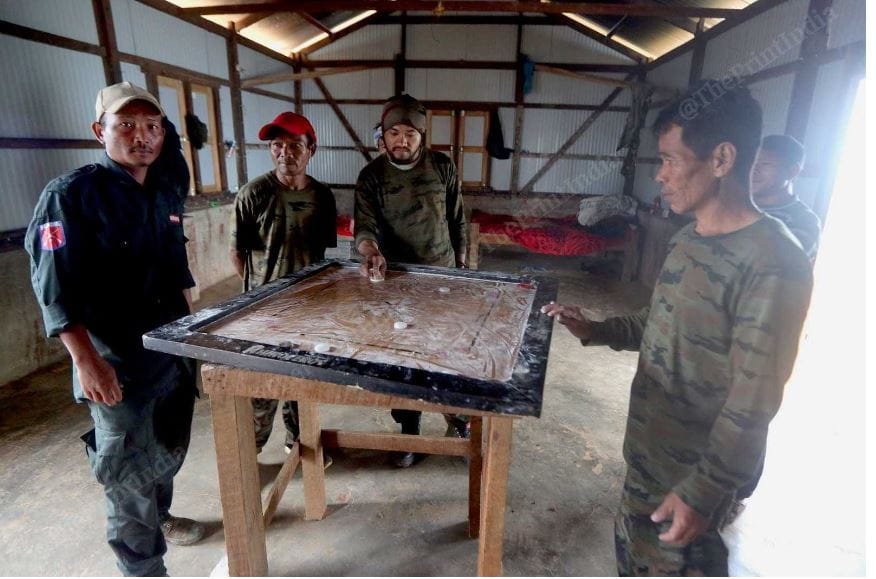 एक कोने में, एक 30 वर्षीय व्यक्ति अपनी ग्रेनेड मशीन गन (जीएनजी) को साफ करने में व्यस्त है, जबकि उसके दोस्त बगल के कमरे में कैरम का खेल खेलने में व्यस्त हैं.