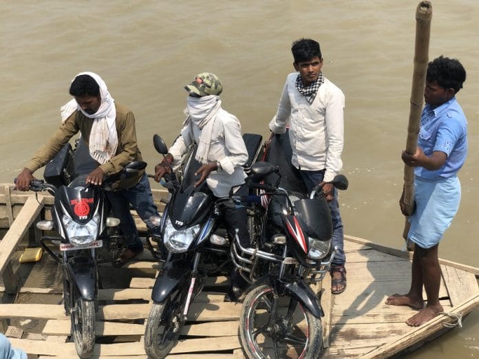 दिप्रिंट की टीम एक नाव से नदी पार करते हुए एक टापू पर बसे गांव कोरोनावायरस और लॉकडाउन में हालात जानने पहुंची, यहां एक परिवार के दो बेटे अनिल और प्रमोद पंजाब में फंसे हुए हैं.