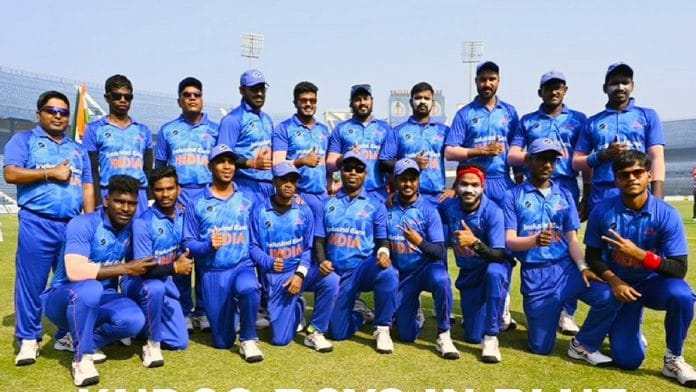 बेंगलुरु: भारत की दृष्टिबाधित क्रिकेट टीम ने टी20 विश्व कप में कप्तान अजय कुमार रेड्डी और सुनील रमेश की नाबाद शतकीय पारियों और दोनों के बीच तीसरे विकेट के लिए 248 रन की अटूट साझेदारी के दम पर फाइनल में बांग्लादेश को 120 रन से हराकर लगातार तीसरा खिताब अपने नाम कर लिया. पीएम नरेंद्र मोदी ने इसके लिए टीम को बधाई दी है.