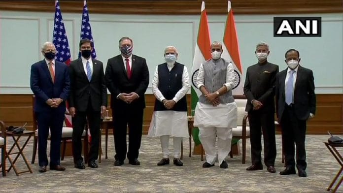 विदेश मंत्री एस जयशंकर और रक्षा मंत्री राजनाथ सिंह ने अमेरिकी विदेश मंत्री माइक पोम्पिओ और रक्षा मंत्री मार्क टी एस्पर के साथ टू प्लस टू वार्ता के तीससे चरण के तहत बातचीत की. दोनों पक्षों के शीर्ष सैन्य और रक्षा अधिकारियों ने इसमें सहयोग दिया.