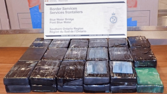 CBSA ने एक बयान में बताया कि यह कोकीन 12 जून को अमेरिका से एक व्यावसायिक ट्रक के जरिए आयात की गई थी. ब्लू वॉटर ब्रिज पोर्ट ऑफ एंट्री पर ट्रक की जांच के दौरान, डिटेक्टर डॉग की मदद से बॉर्डर सर्विस ऑफिसरों को छह बॉक्स में 161 ईंटें संदिग्ध कोकीन की मिलीं.