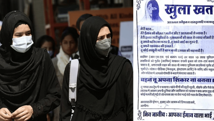बता दें की मामला सामने आने के बाद मध्य प्रदेश के गृह मंत्री नरोत्तम मिश्रा ने इंदौर में कुछ अज्ञात लोगों द्वारा “भगवा प्रेम-जाल” के खिलाफ मुस्लिम लड़कियों को ओपन लेटर के रूप में पर्चे बांटे जाने के बाद उच्च स्तरीय जांच के आदेश दिए हैं.