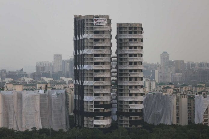 दिल्ली के कुतुब मीनार से भी ऊंचे 100 मीटर के एपेक्स और सियान टॉवर को गिराने के लिए 3,700 किलोग्राम से अधिक विस्फोटक का इस्तेमाल किया गया. उच्चतम न्यायालय ने एमराल्ड कोर्ट सोसायटी परिसर के बीच इस निर्माण को नियमों का उल्लंघन बताया था, जिसके बाद इन्हें ढहाने का काम किया गया.
