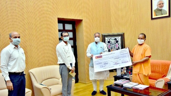 पीएम केयर फंड की तरह यूपी में सीएम पीड़ित सहायता कोष- कोविड केयर फंड बनाया गया है. 27 अप्रैल को जल निगम के एमडी विकास गोठलवाल और नगर विकास मंत्री आशुतोष टंडन ने मुख्यमंत्री योगी आदित्यनाथ को लगभग 1.47 करोड़ का चेक सौंपा था.