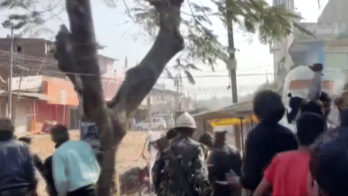#WATCH | A clash erupted b/w two groups over the installation of 'Toran gate' (entry gate) in a market in Palamu's Panki today. Sec 144 imposed