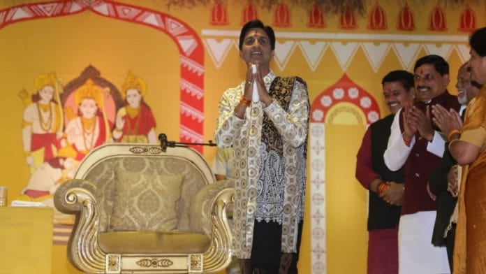 मध्य प्रदेश के उज्जैन में बुधवार को विक्रमोत्सव के दूसरे दिन कथा करने आए विश्वास ने कहा, ‘‘मैंने बच्चे को अभी कहा था कि सिर्फ बोलने से नहीं होगा बेटा, तुम्हें पढ़ाई करनी होगी, तुम पढ़ाई नहीं करते हो.’’