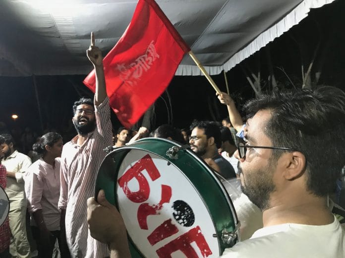 नई दिल्ली : जवाहरलाल नेहरू यूनिवर्सिटी छात्र संघ (जेएनयूएसयू) चुनाव में वोटों की गिनती से साफ़ है कि एक बार फिर से कैंपस में लेफ्ट की जीत हुई है. गिनती के ट्रेंड के मुताबिक सेंट्रल पैनल की चारों सीटों पर लेफ्ट की जीत तय है. हालांकि, अभी नतीजों की औपचारिक घोषणा होना बाकी है. वहीं, पहले ‘हिंदू लीडर’ की मांग को भी जेएनयू कैंपस ने सिरे से ख़ारिज कर दिया है.