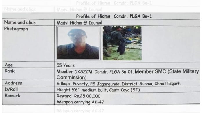 छत्तीसगढ़ पुलिस के सूत्रों के अनुसार, हिडमा को ‘सुरक्षा बलों के खिलाफ हमलों की सुनियोजित साजिश’ रचने और उन्हें ‘काफी हद तक सफलता’ के साथ अंजाम देने के लिए जाना जाता है.
