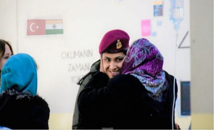 भारतीय सेना की मेजर, मेजर बीना तिवारी ने 60 पैराशूट फील्ड अस्पताल में चिकित्सा अधिकारी के रूप में सेवा की थी, उनकी एक तस्वीर सोशल मीडिया पर काफी वायरल हुई जिसमें उन्हें एक तुर्की महिला को गले लगाते हुए देखा गया था.