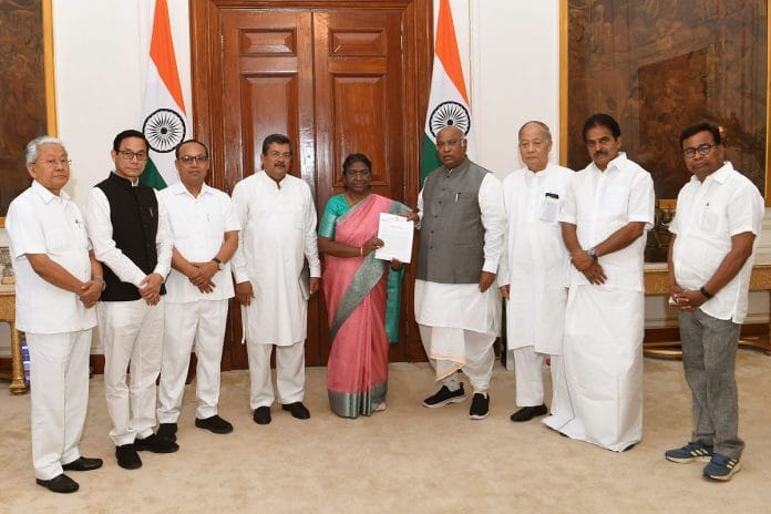 प्रतिनिधिमंडल ने राष्ट्रपति को ज्ञापन सौंपा है. इस प्रतिनिधिमंडल में खरगे के अलावा कांग्रेस के संगठन महासचिव के.सी. वेणुगोपाल, महासचिव मुकुल वासनिक, कांग्रेस के मणिपुर प्रभारी भक्त चरण दास, पूर्व मुख्यमंत्री ओकराम इबोबी सिंह और कुछ अन्य नेता शामिल थे.
