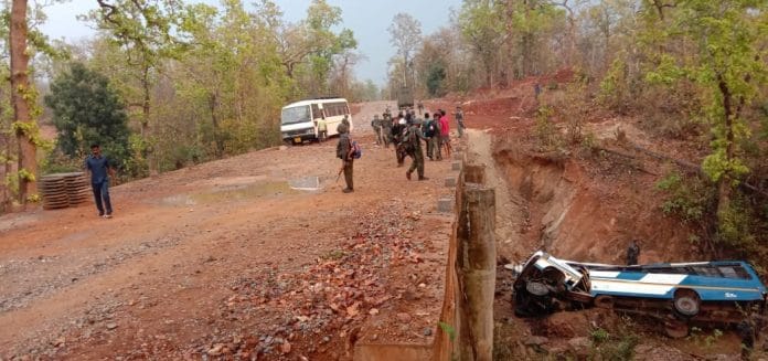 दिप्रिंट से बात करते हुए नारायणपुर एसपी मोहित गर्ग ने बताया, ‘घटना छोटेडोंगर पुलिस स्टेशन स्थित कन्हार गांव और कड़ेनार पुलिस कैम्पों के बीच एक पुलिया पर करीब 4 बजे शाम को हुई. आईईडी ब्लास्ट में बस पुलिया से नीचे गिर गई जिसके कारण पुलिस जवान शहीद हुए हैं. करीब 15 जवान घायल हैं. घायल जवानों को पहले नारायणपुर जिला मुख्यालय लाया जा रहा है. वहां से एयरलिफ्ट कराकर रायपुर भेजा जाएगा.’ उन्होंने बताया कि बस में 24 डीआरजी जवान सवार थे.