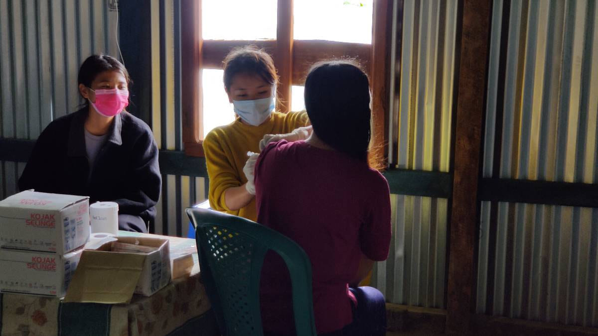 अधिकांश गांवों में, जहां कोई कार नहीं जा सकती, स्वास्थ्य कार्यकर्ता कोविड के टीके लगाने के लिए 5 किमी तक पैदल चलकर जाते हैं. अन्यथा, जो भी छोटे-मोटे साधन उपलब्ध कराए जाते हैं, उसी से काम चलाते हैं. संगलुंगपांग में काम होने के बाद टीम ने कुछ समय के लिए राजमार्ग के एक बस स्टॉप पर आसपास के कुछ गांवों के लिए एक अस्थायी टीकाकरण शिविर लगाया, वो भी ऐसी स्थिति में जब वहां पर बारिश हो रही थी.