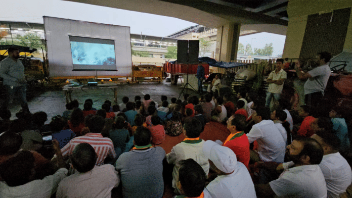 नई दिल्ली: पूर्वी दिल्ली के मयूर विहार इलाके में बाढ़ प्रभावित लोगों के मनोरंजन के लिए राहत शिविर में बॉलीवुड फिल्म दिखाई गई.