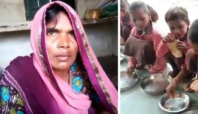यह रुक्मिनी देवी हैं। #Mirzapur के उसी विद्यालय में खाना बनाती हैं। इनका साफ़-साफ़ कहना है कि पत्रकार #PawanJaiswal की कोई ग़लती नहीं है। सिर्फ़ एक दिन नमक-रोटी नहीं बल्कि हर दिन राशन, दूध-केला देने में कोताही(टाल-मटोल) होता था। एक दिन नमक-चावल बच्चों को दिया गया। #ShameOnUPGov pic.twitter.com/G3aepoLJ3d