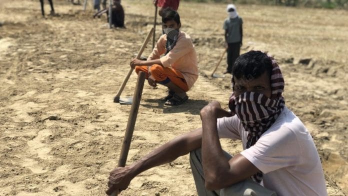 इस सिलसिले में दिप्रिंट ने फरीदपुर तहसील के बिलपुर गांव का दौरा किया जहां मनरेगा के तहत 110 मजदूर काम कर रहे थे. बिलपुर गांव के प्रधान जितेंदर वर्मा बताते हैं, ‘110 प्रवासी मजदूरों में से 35 ऐसे मजदूर हैं जो बाहर से वापस आए हैं. इन लोगों के पास रोजगार के लिए कोई काम नहीं था. इसलिए वो चकरोड के लिए मिट्टी को खोदने के काम में लग गए हैं. चकरोड एक तरह का कच्चा रास्ता होता है जो दो गांवों को आपस में जोड़ता है और लोग अपने खेतों की बुआई के लिए इस रास्ते से ट्रैक्टर ला सकते हैं’. जहां ये चकरोड बनाया जा रहा था वो शाहजहांपुर और बरेली जिले की सीमा पर था और सात दिन पहले ही इसपर काम शुरू हुआ था.