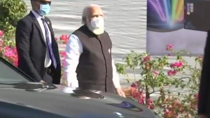 Ahmedabad: Prime Minister Narendra Modi arrives at the Zydus Biotech Park to review the development of #COVID19 vaccine candidate ZyCOV-D pic.twitter.com/8cBQNQVUrN