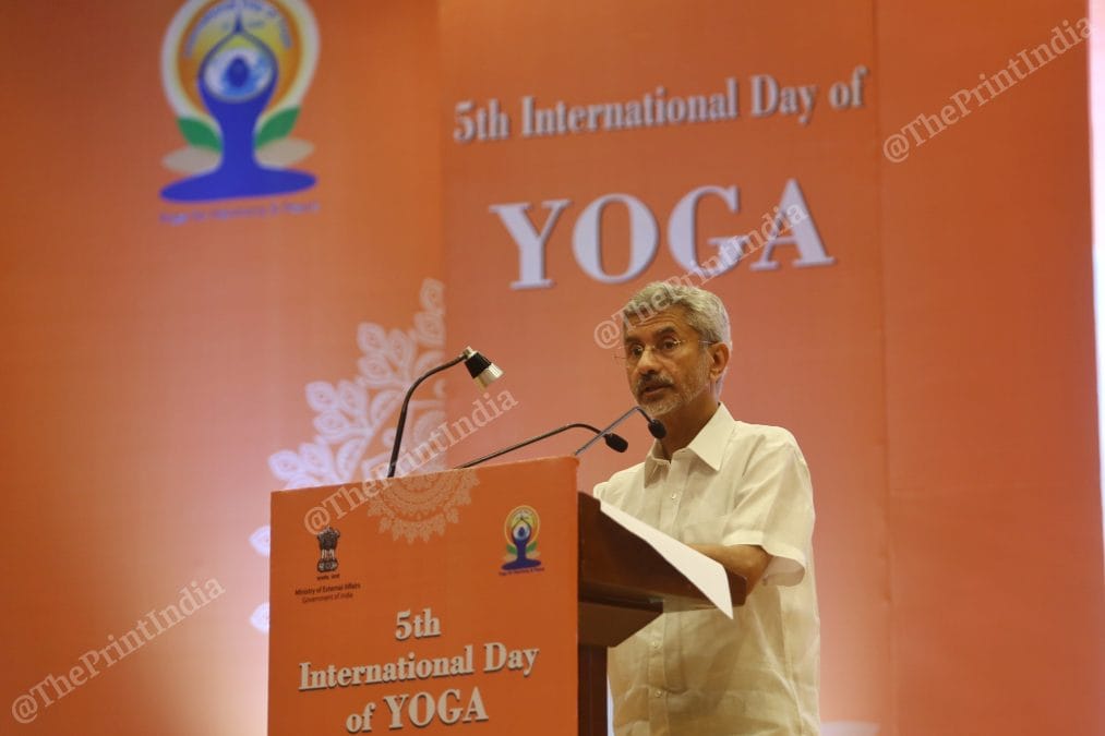 5वें अंतर्राष्ट्रीय योग दिवस के मौके पर संबोधित करते हुए विदेश मंत्री एस जयशंकर.