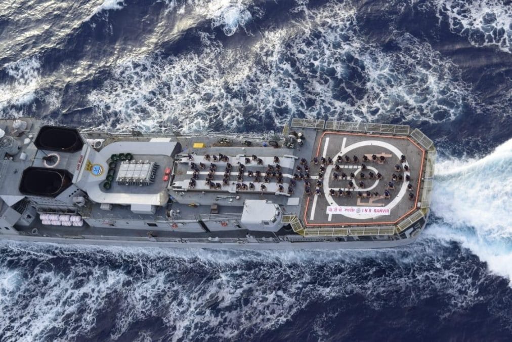 बंगाल की खाड़ी में तैनात आईएनएस रणवीर पर नौसेना के जवानों ने अंतर्राष्ट्रीय योग दिवस के मौके पर योग किया. यह भारतीय वायुसेना की ताकत को दर्शाता है.फोटो- एएनआई