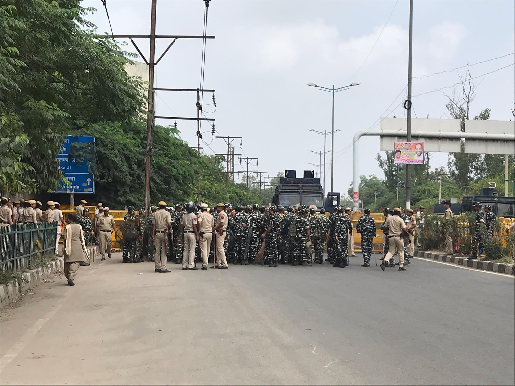 हालांकि, इस प्रदर्शन में वैसा हुजूम नहीं था जैसा चंद्रशेखर के नेतृत्व वाले 22 अगस्त के प्रदर्शन के दौरान था. मुश्किल से मुट्ठी भर लोग भीम आर्मी के बैनर तले ये प्रदर्शन कर रहे थे और इसे दलित-मुस्लिम एकता बता रहे थे. इस प्रदर्शन में भीम आर्मी के झंडे-बैनर तो दिखे लेकिन उनके लोग ग़ायब थे. प्रदर्शन करने वालों की संख्या भले ही मुट्ठी भर भी न रही हो, लेकिन दिल्ली पुलिस ने इलाके को छावनी में तब्दील कर दिया था और जिस सड़क पर मंदिर का रास्ता था उसे बैरिकेडिंग से बंद कर दिया था.