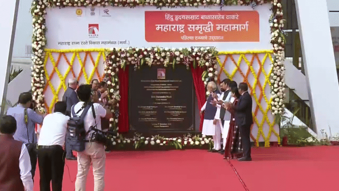 Nagpur, Maharashtra | PM Modi inaugurates the Phase-I of Hindu Hrudaysamrat Balasaheb Thackeray Maharashtra Samruddhi Mahamarg, covering a distance of 520 Kms and connecting Nagpur and Shirdi pic.twitter.com/Vo9Xkn394P