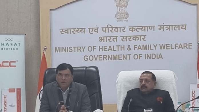 नई दिल्ली: केंद्रीय स्वास्थ्य मंत्री मनसुख मंडाविया और विज्ञान व प्रौद्योगिकी मंत्री जितेंद्र सिंह ने गुरुवार को भारत के 74वें गणतंत्र दिवस के अवसर पर भारत बायोटेक के नेजल कोविड टीके ‘इनकोवैक’ को लांच किया.