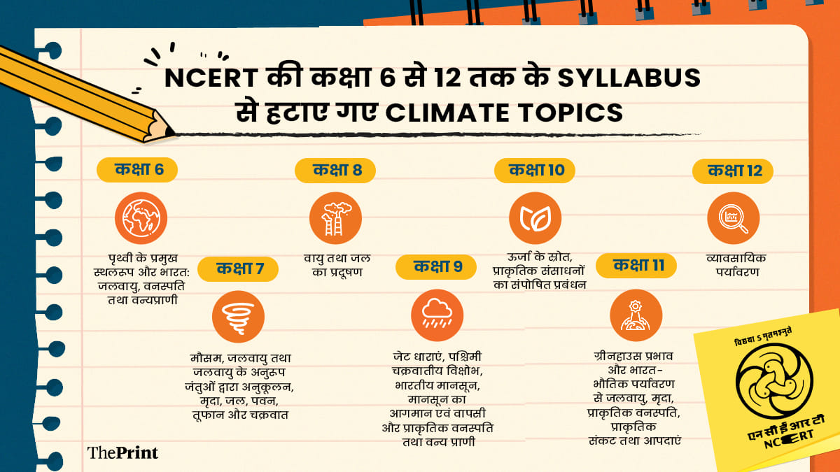 नई दिल्ली: पूरा विश्व जब पर्यावरण से जुड़े मुद्दों को लेकर लगातार जूझ रहा है तब इस बीच राष्ट्रीय शैक्षिक अनुसंधान और प्रशिक्षण परिषद (एनसीईआरटी) ने अपने पाठ्यक्रम से जलवायु से जुड़े महत्वपूर्ण विषयों को हटाने का फैसला किया है.