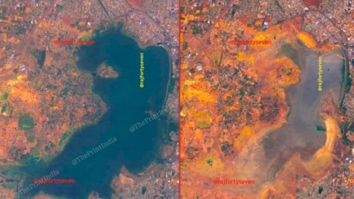 ठीक एक वर्ष के अंतराल पर 15 जून 2018 और 15 जून 2019 उपग्रह से ली गई तस्वीरें संकटपूर्ण स्थिति की पुष्टि करती हैं. चेन्नई को पेयजल आपूर्ति करने वाले प्रमुख स्रोतों में से एक, वर्षा आश्रित पुझल झील में जल के स्तर में भारी अंतर देखा जा सकता है.