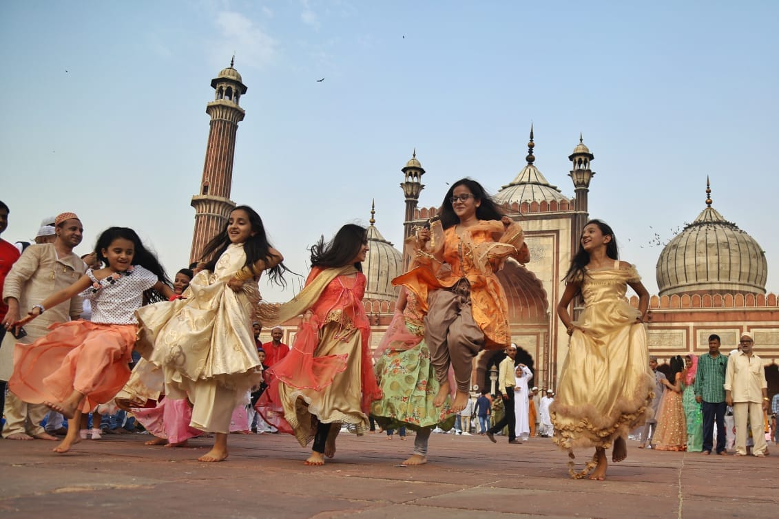 ईद मनाने जामा मस्जिद सज-धजकर पहुंचे लोग. खुशी से झूमती बच्चियों ने ईद में चार चांद लगा दिया.