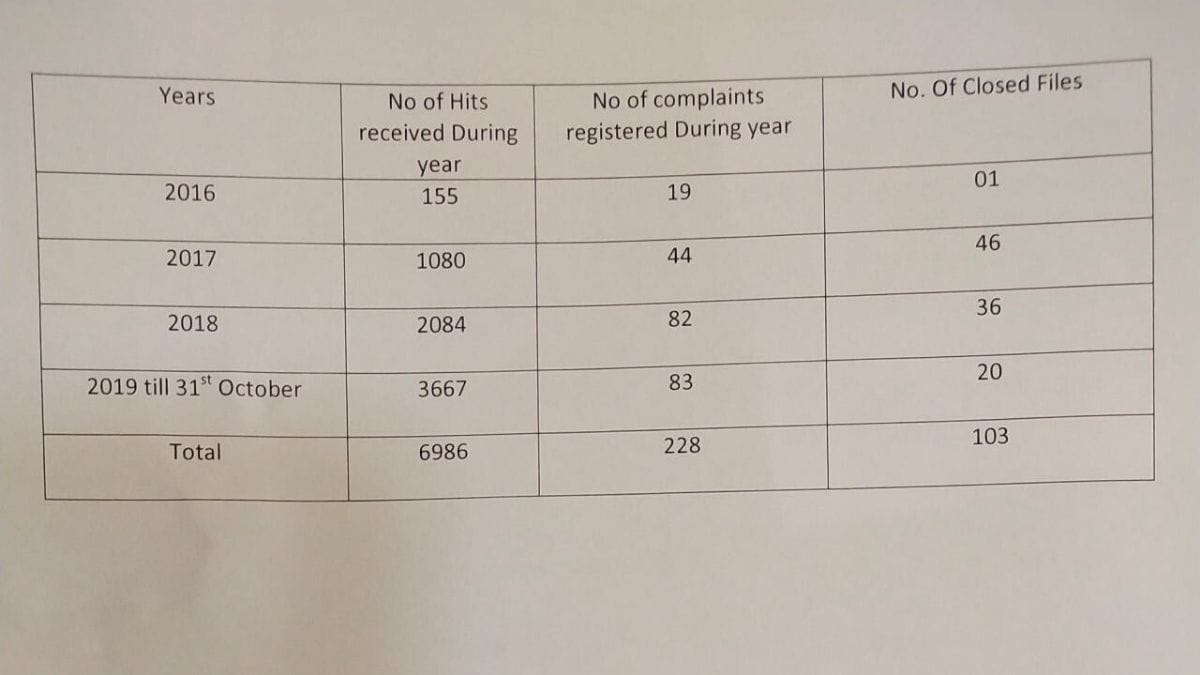 साल 2016 में 19 शिकायतें दर्ज हुईं, तो 2017 में 44 शिकायत हुई. वहीं, 2018 में 82 और अक्टूबर 2019 तक 83 शिकायत दर्ज हुई.