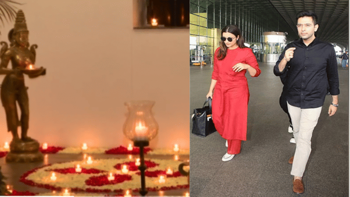 नई दिल्ली: आप सांसद राघव चड्ढा और अभिनेत्री परिणीति चोपड़ा की शनिवार को हो रही सगाई के लिए राघव चड्ढा के सरकारी आवास पर दीयों और फूलों की सजावट देखी गई.